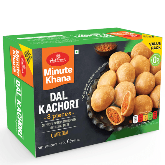 Haldiram?s Dal Kachori is a popular Indian snack made with crispy pastry filled with spiced lentils.