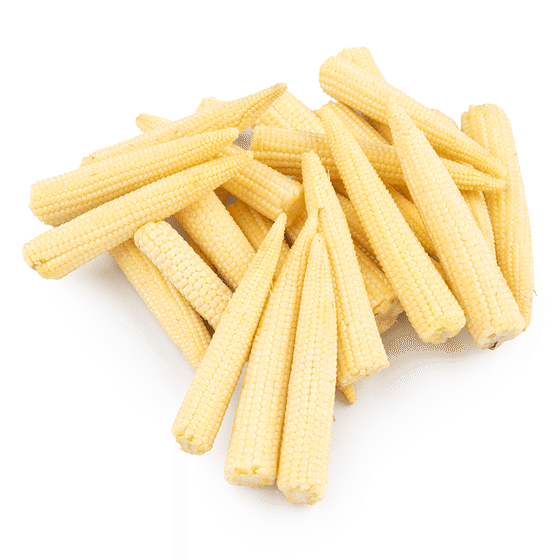 Tender baby corn with mild sweet taste. Ideal for stir-fries, salads, and Asian cuisine.