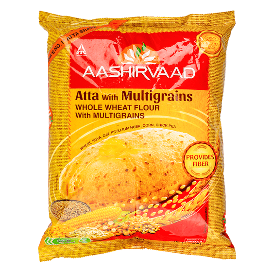 Aashirvaad Whole Wheat Multigrain Flour is a nutritious blend of whole wheat and carefully selected grains. It provides a rich source of fiber, vitamins, and minerals, making it ideal for preparing healthy rotis, chapatis, and other traditional breads.