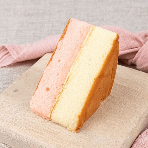 Soft vanilla sponge layered with strawberry flavor. It is sweet, fruity, and well balanced. A delicious treat for any occasion.